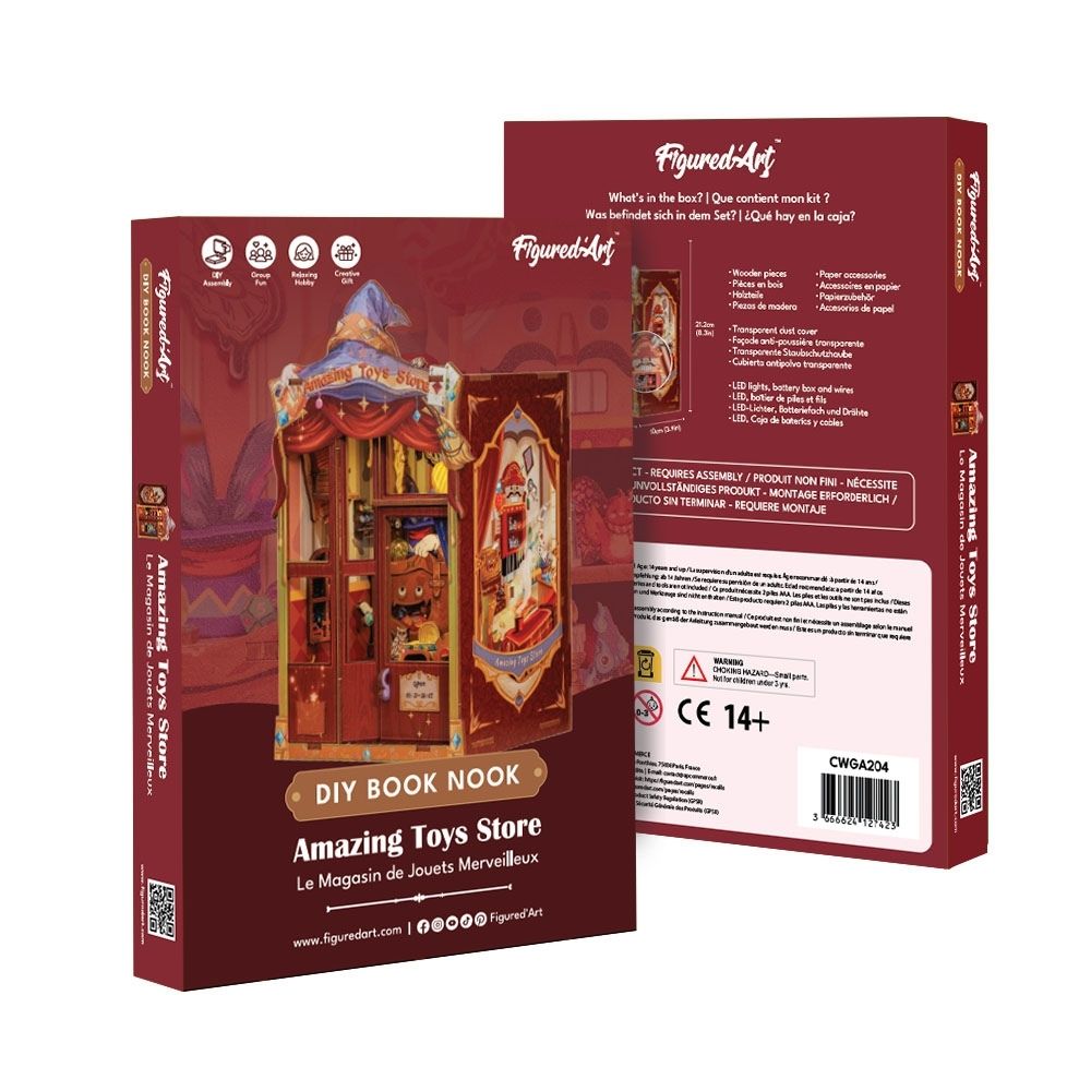 Entre deux romans, une porte s’ouvre. La lumière douce révèle un comptoir chargé de jouets, d’automates et de petites surprises. Ce book nook transforme votre étagère en passage secret vers une boutique pleine d’émerveillement.