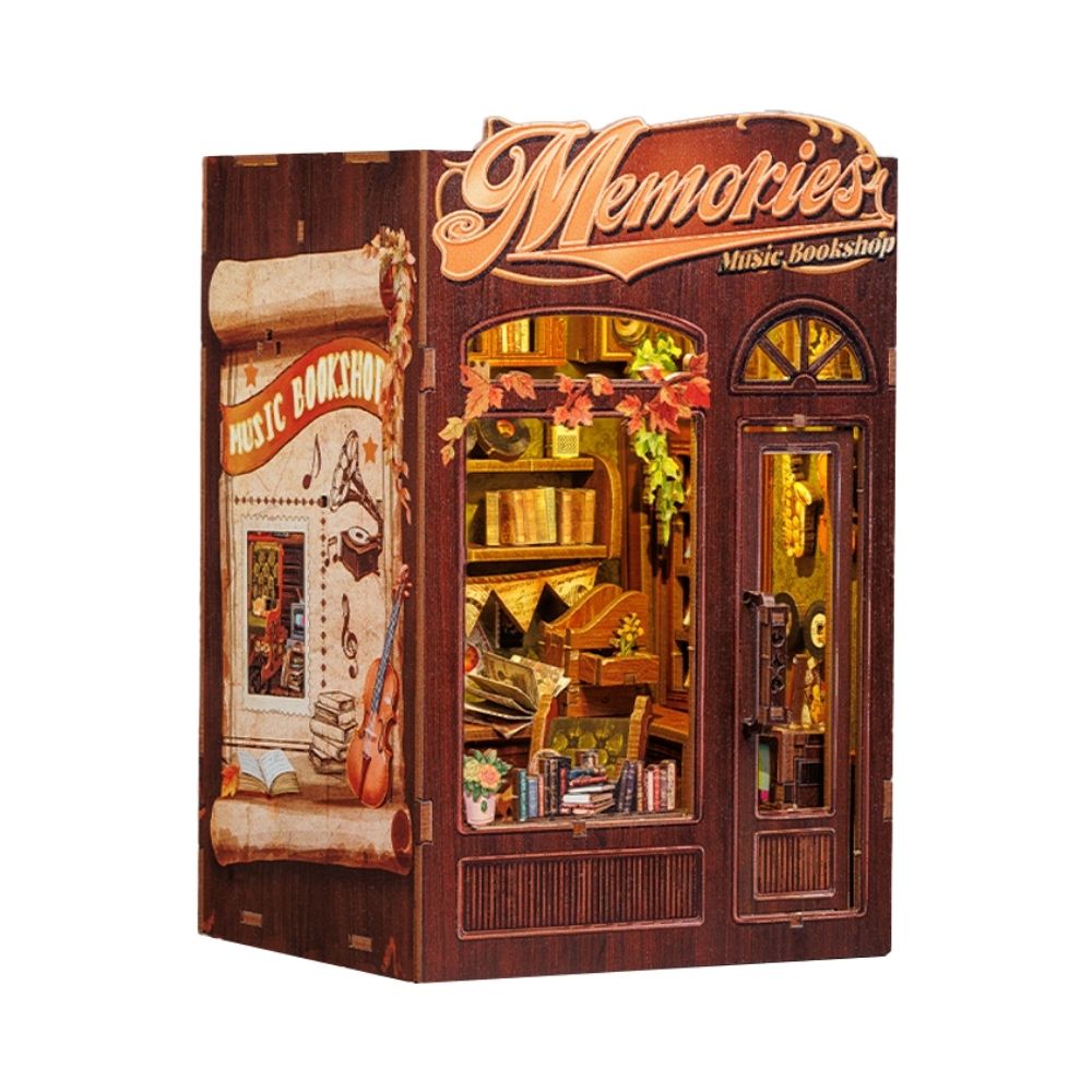 Imaginez une petite librairie nichée entre vos romans, où les partitions côtoient les souvenirs et où une lumière douce s’allume à la tombée du jour. Ce book nook « Librairie Musique et Souvenirs » transforme votre étagère en scène vivante, pleine de calme et de poésie.