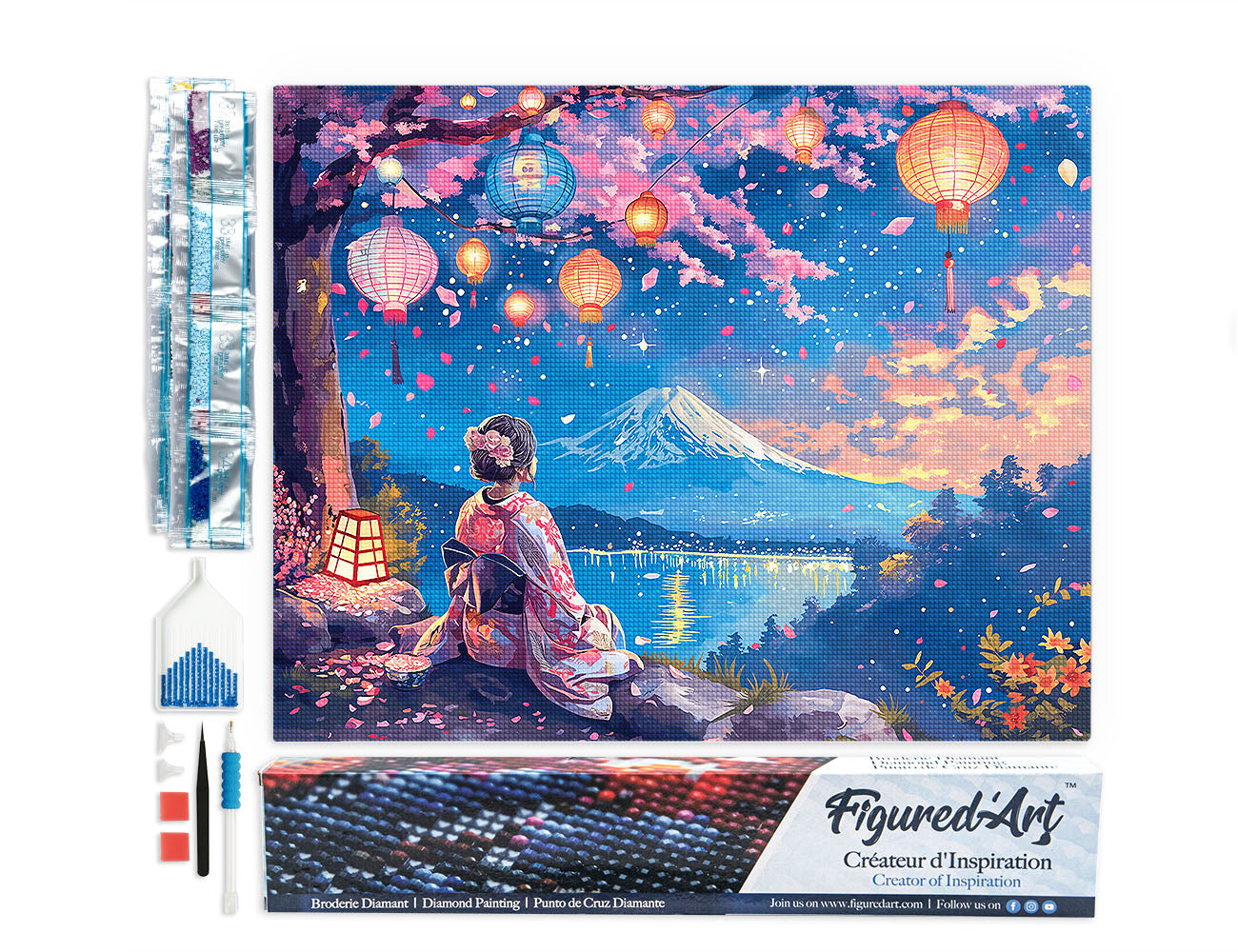 Imaginez la douceur d’une soirée japonaise : une geisha élégante, des lanternes qui diffusent une lumière chaude, et le Mont Fuji en toile de fond. Avec cette Broderie Diamant, vous transformez un moment calme à la maison en véritable parenthèse créative.