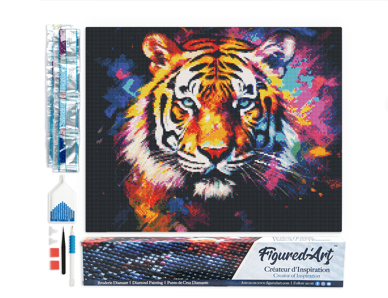 Imaginez ce tigre coloré abstrait apparaître peu à peu sous vos doigts. Chaque diamant posé renforce les contrastes, les lignes et l’énergie du motif. La Broderie Diamant devient un vrai rituel à la maison, calme et captivant.