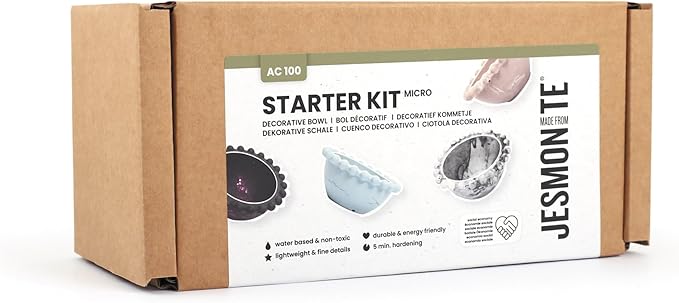 Ce kit jesmonite est pensé comme un point d’entrée rassurant. Il comprend un ou plusieurs moules en silicone, des accessoires, la quantité nécessaire de base et de liquide pour réaliser 4 bols décoratifs, 6 pigments de 2 ml pour personnaliser vos créations, ainsi qu’une notice claire pour vous guider étape par étape.