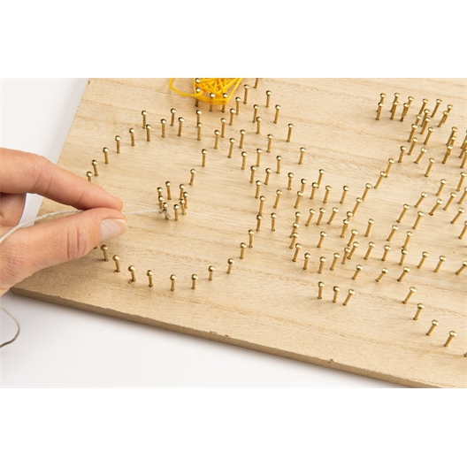 Ce kit de string art joue avec les lignes et les couleurs pour créer un tableau décoratif à la fois graphique et chaleureux. Un moment créatif à la maison, calme et gratifiant, jusqu’à pouvoir dire avec le sourire : C’est moi qui l’ai fait.