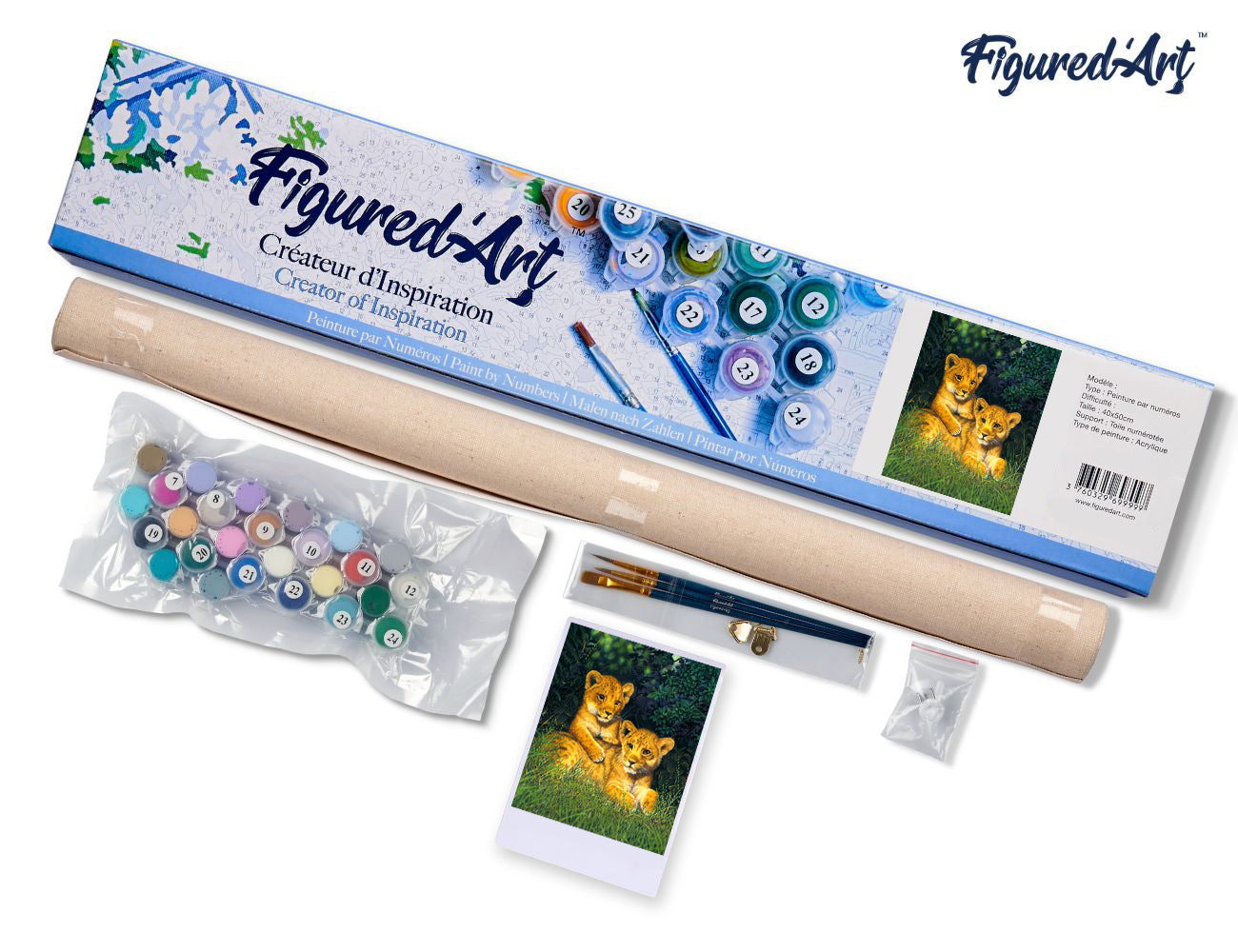 Installez-vous, déroulez la toile… et laissez les lionceaux apparaître, couleur après couleur. Cette peinture par numéros invite au calme et à la concentration, avec une image chaleureuse qui se construit lentement, sans pression.