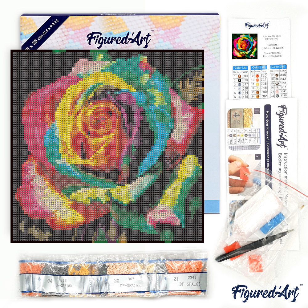Mini Diamond Painting 25x25cm avec cadre - Rose Multicolore Mini Diamond Painting 25x25cm avec cadre - Rose Multicolore
