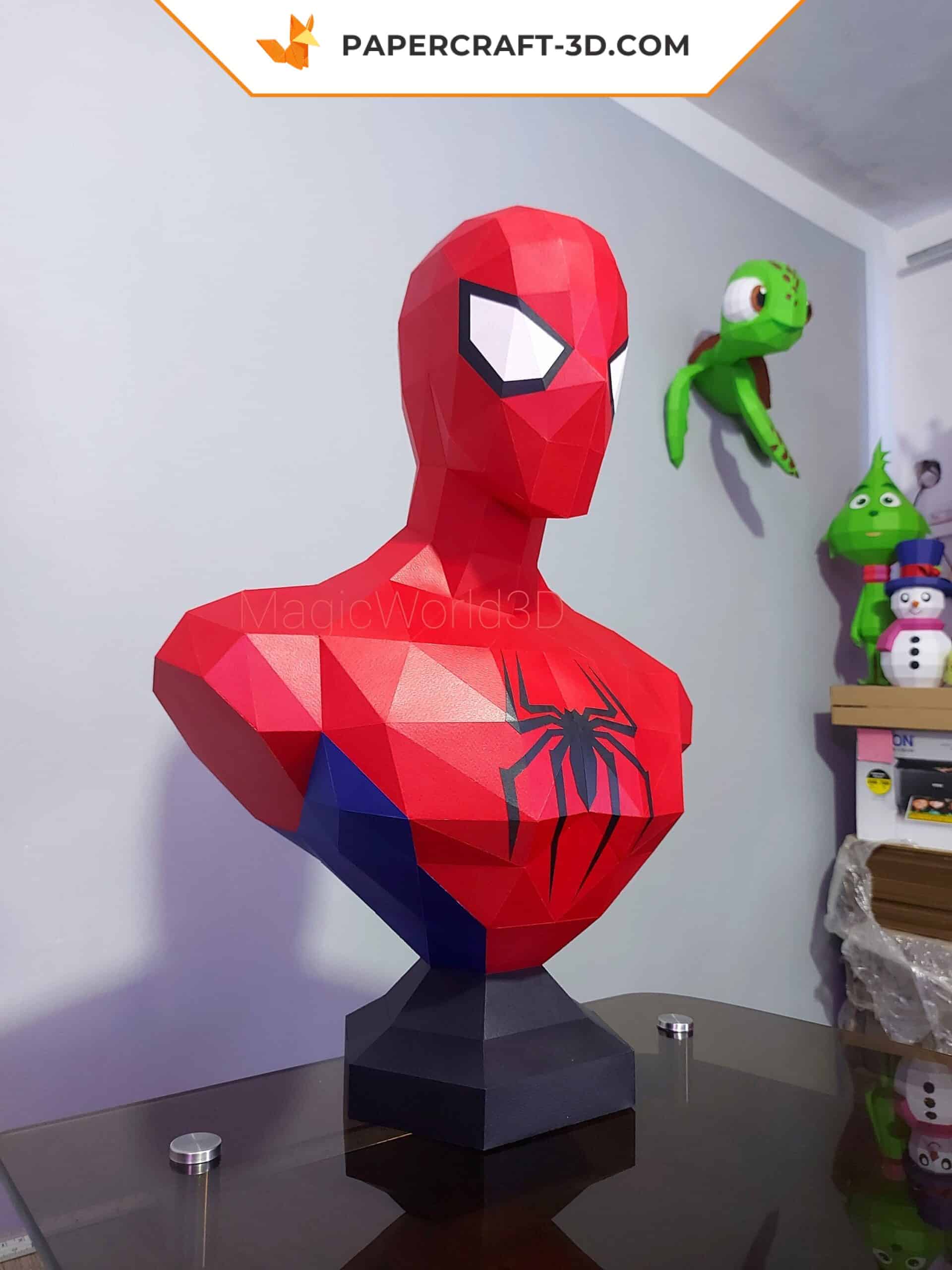 Un buste de Spiderman qui prend vie, feuille après feuille