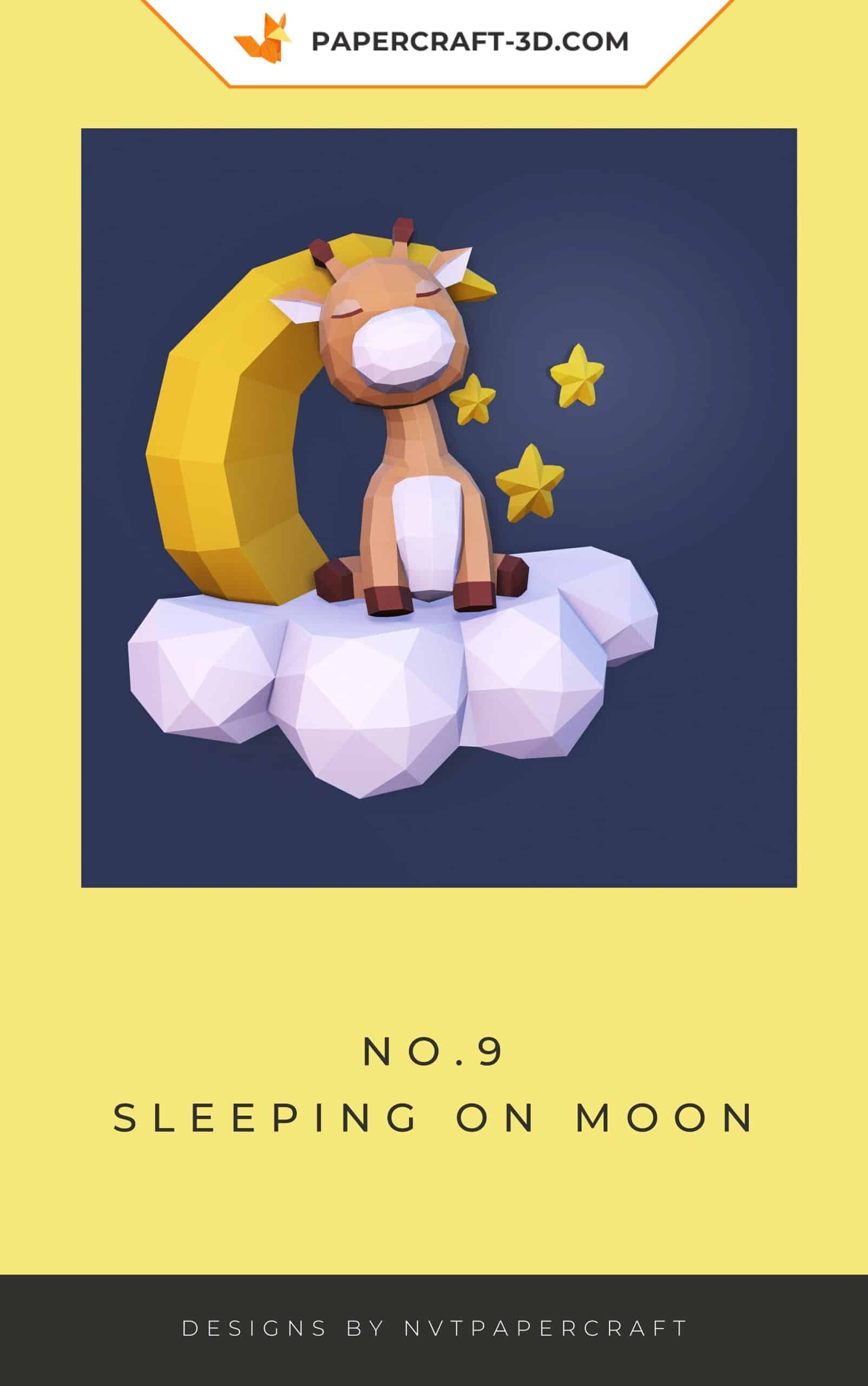 Une fois assemblée, la scène complète mesure 391 mm de hauteur, 610 mm de largeur et 260 mm de profondeur. Le modèle est construit à partir de 42 feuilles réparties entre la girafe, le nuage, la lune et les étoiles.