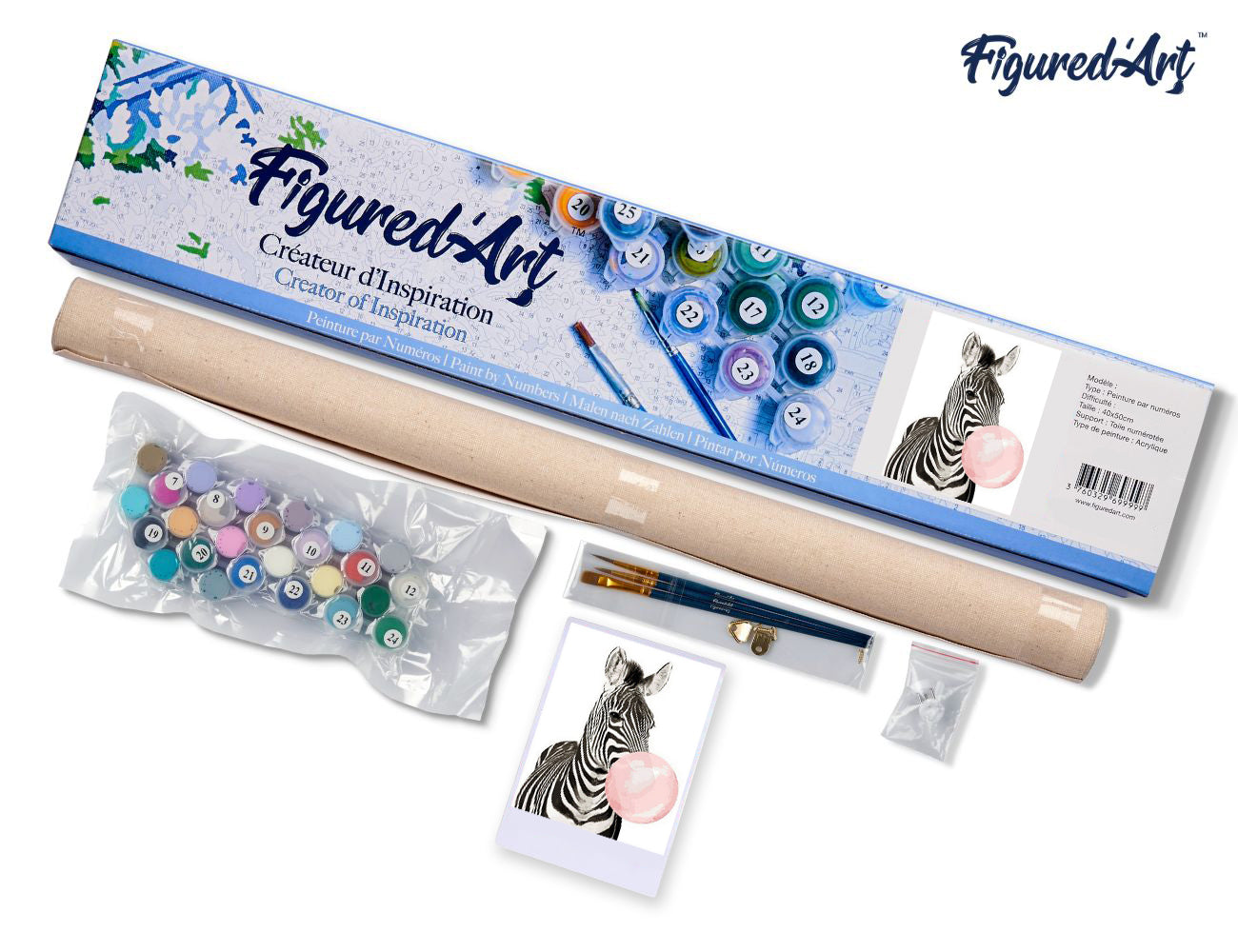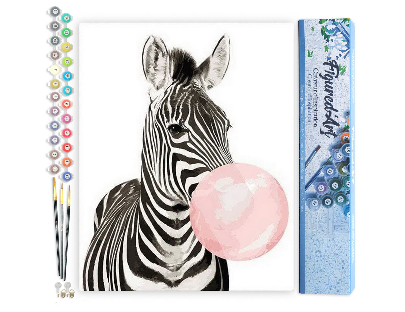 Imaginez ce zèbre malicieux, son chewing-gum prêt à éclater, apparaître peu à peu sur la toile. Avec cette peinture par numéros, chaque zone peinte apporte sa petite satisfaction, jusqu’à révéler une scène graphique et pleine d’humour.